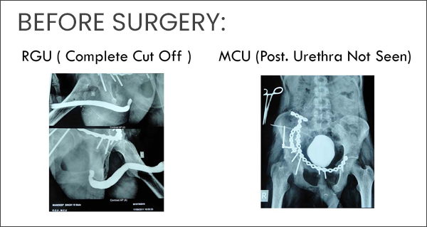 Mr Shyam Meena (name changed) 29 yr a young boy employed in a shipping company. He was trapped between a metallic door in a submarine and sustained a crush fracture of the pelvis. He developed retention of urine with urethral bleeding. Underwent emergency surgery for pelvic brim (pelvic girdle) fixation and suprapubic catheterization. He was not able to pass urine through the urethra because of complete disruption at the level of the prostatomembranous urethra. He approached me and then after evaluation, the diagnosis of PFUDD (pelvic fracture urethral distraction defect) was made. He underwent a successful urethroplasty.