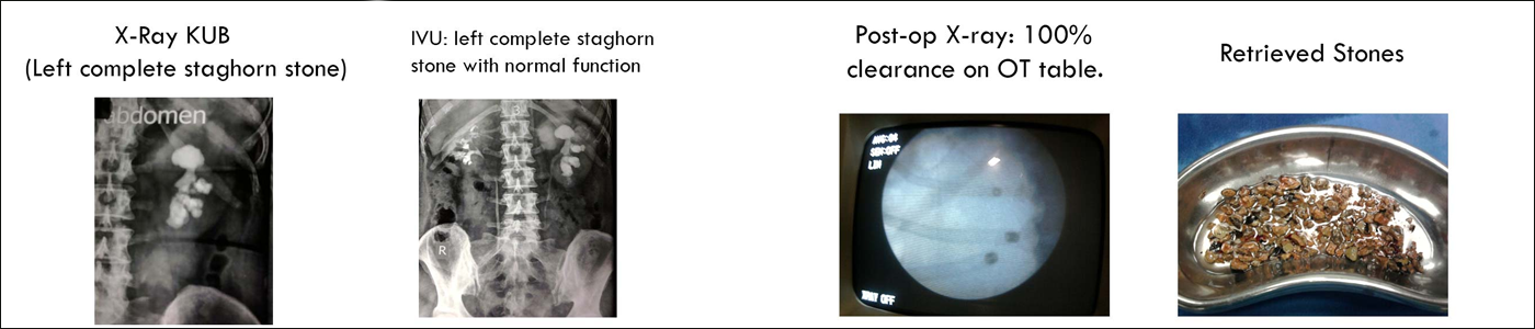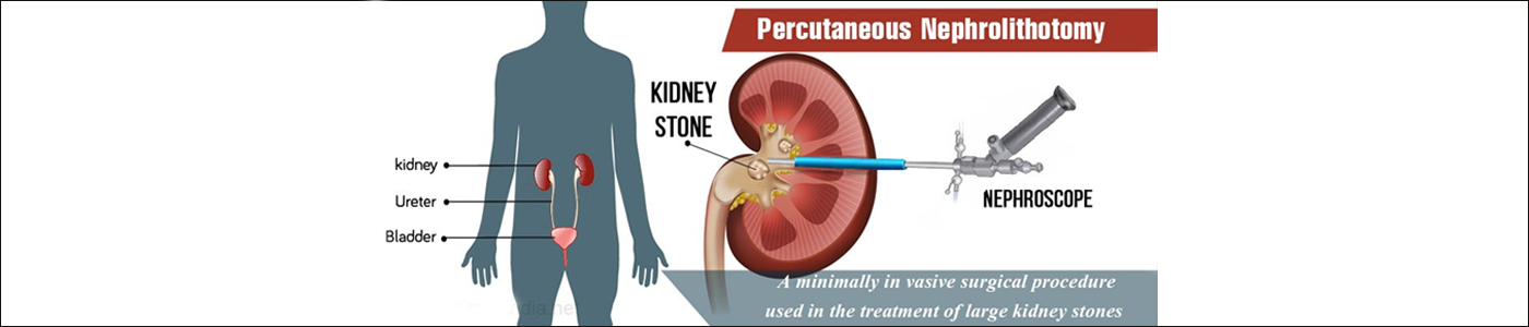 With the help of fluoroscopy or real time x-ray an access to the affected kidney is obtained by puncturing the renal calyces through skin. This is the most important and crucial step because wrong puncture can result in excessive bleeding during tract dilation. A guidewire is placed into the kidney and then the tract is serially dilated with dilator. Depending upon the size of stones the tract is dilated. In Mini PCNL, most commonly done now a days even for larger stones, tract is dilated only up to 15 to 19.5 F. For regular PCNL dilation up to 26 F is sufficient for removing even large staghorn stones. Lesser the diameter of the tract lower is the chance bleeding. After dilating tract, we place the nephroscope, and with the help of pneumatic or ultrasound lithoclast (in case of regular PCNL) or laser (in case of Mini PCNL) kidney stones are removed. Often the urologist will leave a tube in the kidney to drain the urine, and any clots or stone dust. Within the next 24 hours an x-ray is taken. If there is no residual stone fragment then nephrostomy tube is taken out and the patient is discharged home. Occasionally there may be a urine leak from the entry wound which usually settles in few hours.